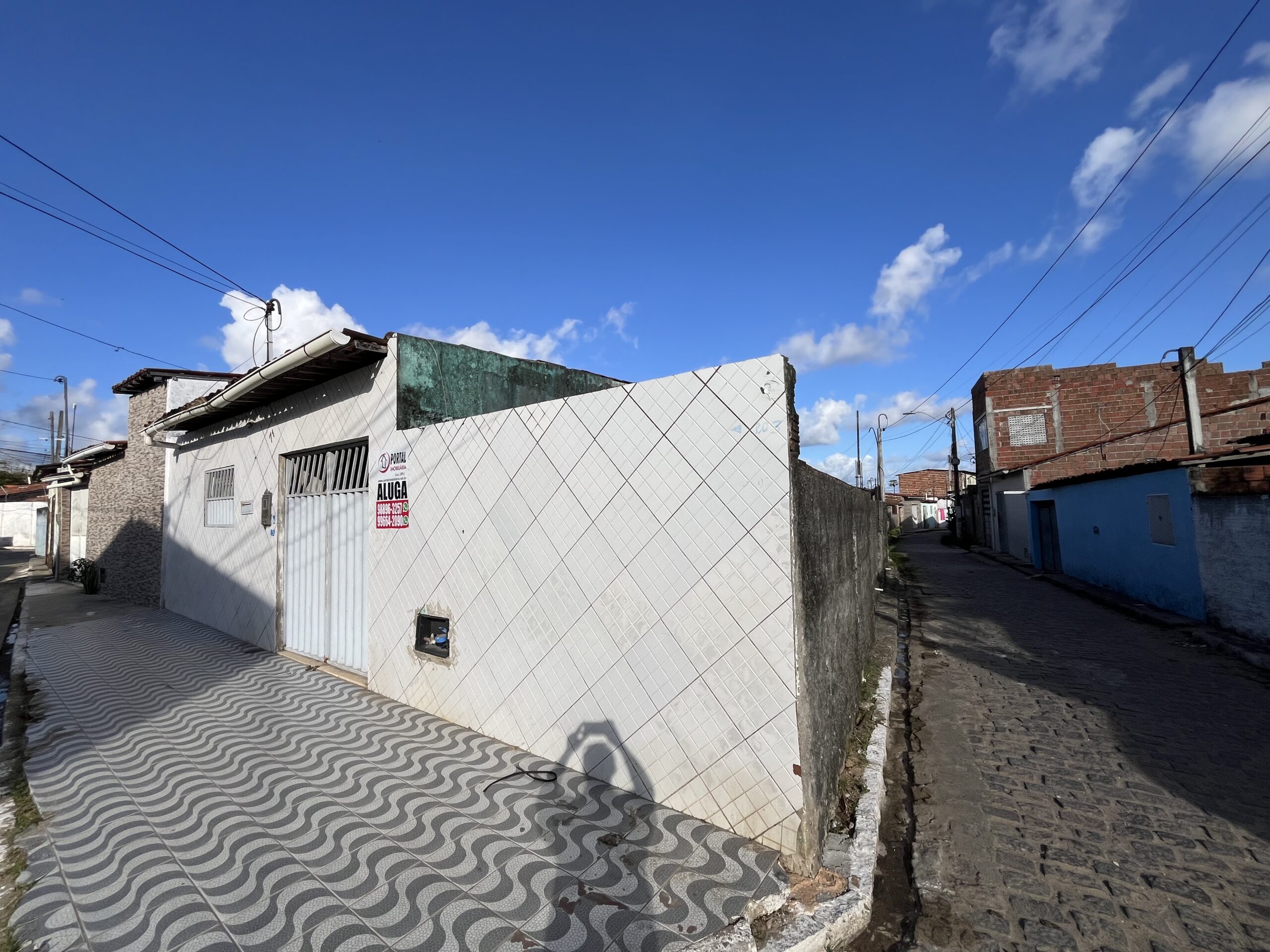 Casa de esquina com área, sala, cozinha, 2 quartos, banheiro social, área de serviço, quintal cimentado, gradeada, rua pavimentada.